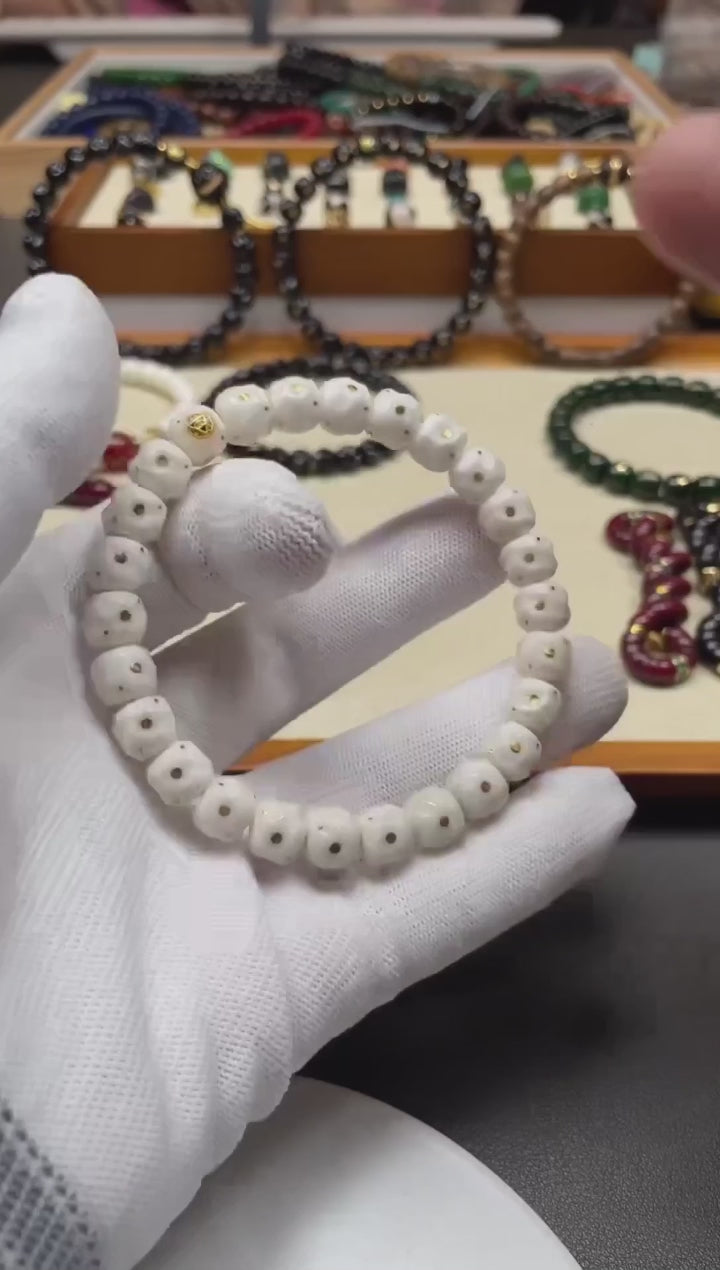 Buddhabelief Natural White Bodhi Bracelet — Hand-Carved & Gold-Inlaid “Star Counting” Design