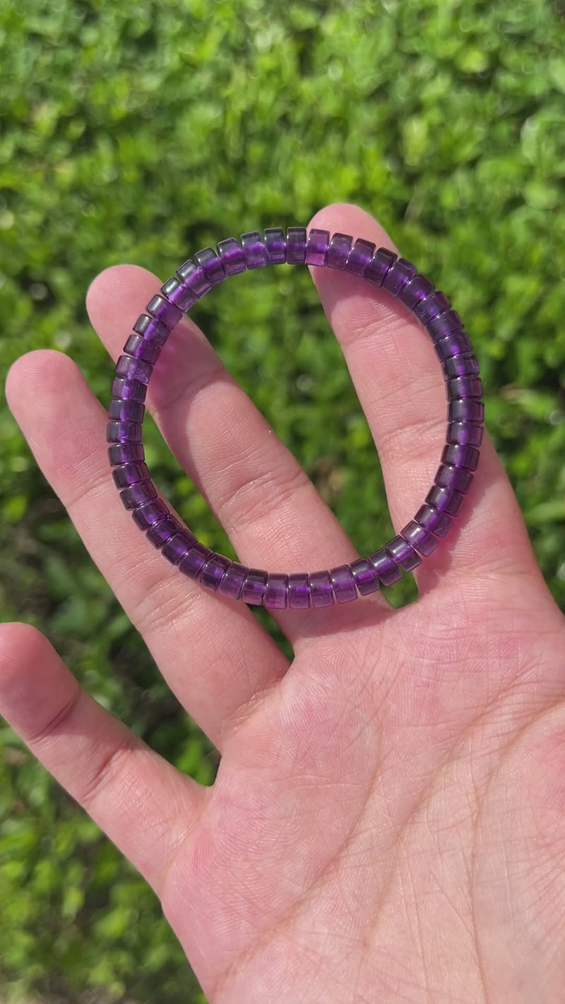 This bracelet is crafted from natural 6mm high-grade amethyst, known for its rich violet transparency and powerful stabilizing energy. Amethyst is one of the most spiritually valued crystals, celebrated for its ability to enhance intuition, clear mental fog, and create a calm mindset necessary for strategic and confident financial decisions.