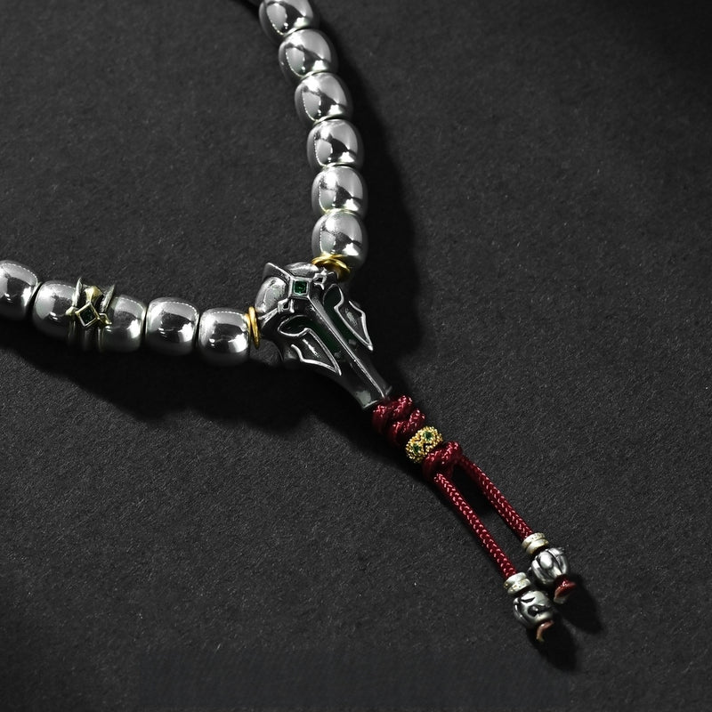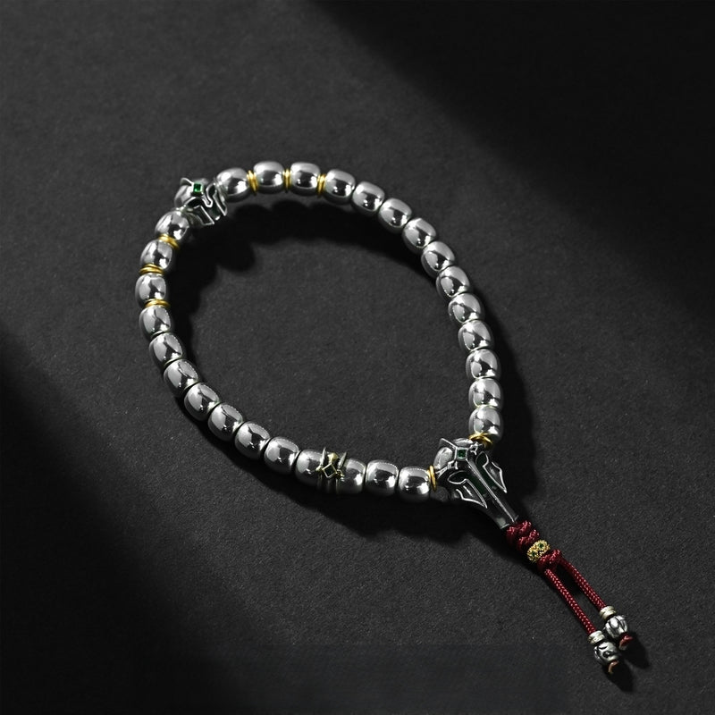 "Xuange Armor · Evil-Suppressing General" 925 Silver Mala – 6.8mm Old-Style Full-Equipped Handheld