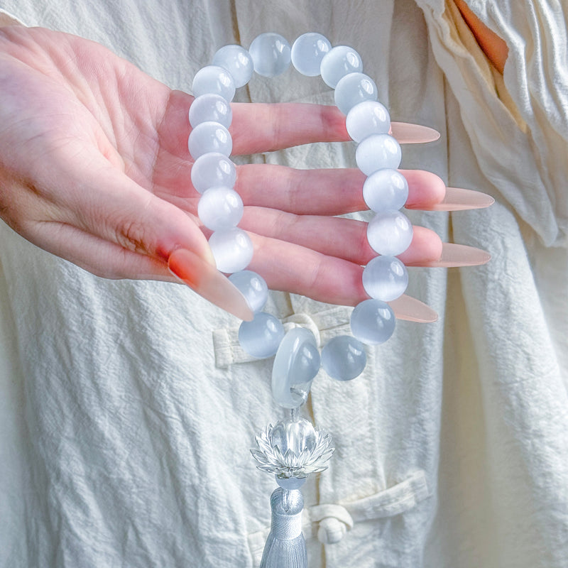 Introducing Buddhabelief Cat's Eye Crystal Mala Beads — where ethereal beauty meets spiritual intention. Crafted with luminous cat's eye-inspired beads in calming hues (pale blue, soft pink, gentle green, etc.), each strand is designed to elevate meditation, nurture inner peace, and infuse daily life with mindful elegance.