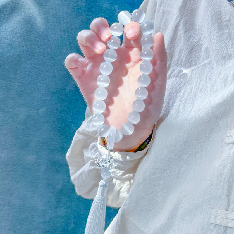 Cat's Eye Crystal Mala Beads | Handmade Spiritual Prayer Beads for Meditation & Peace