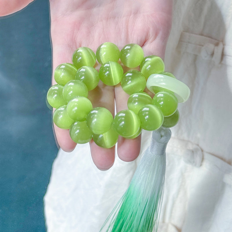 • Luminous Beads: Smooth, round cat's eye-style beads catch light with a subtle, mesmerizing glow (mimicking the “cat's eye” optical effect).