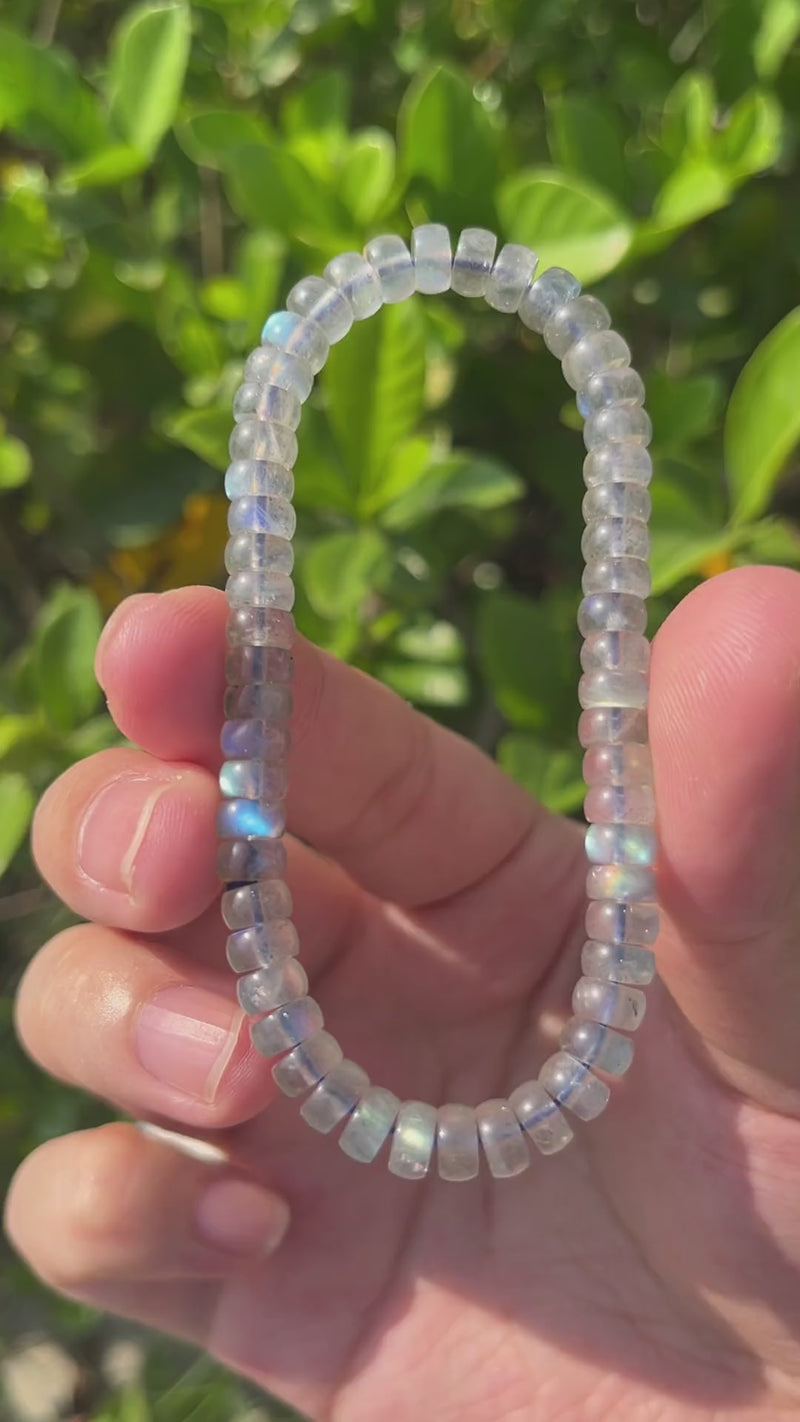 Each 6mm bead is precision-cut and hand-polished to reveal its natural shimmer, known as adularescence. This luminous gray-blue hue mirrors the calm of moonlit water — soft, mysterious, and grounding.