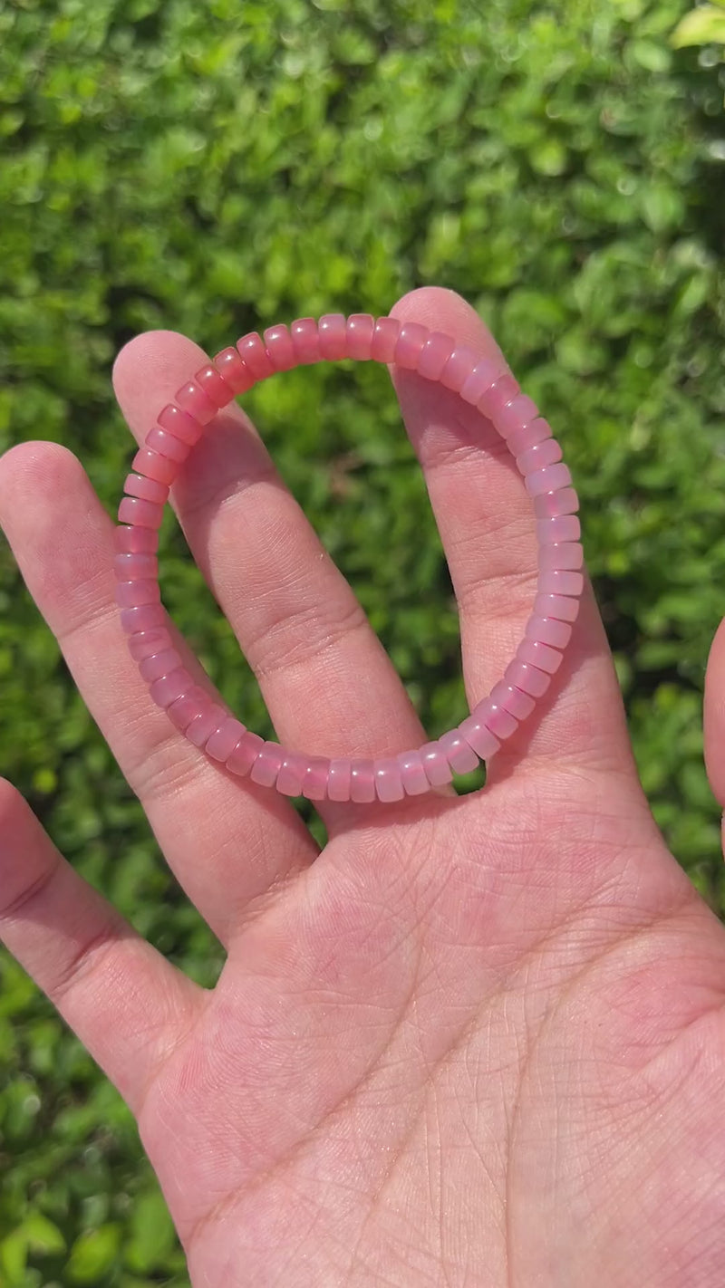This bracelet is crafted from natural 6mm pink agate and chalcedony, known for their smooth, milky translucence and gentle pastel gradient. The gemstone transitions from soft rose pink to vivid reddish-pink, symbolizing the emotional journey from self-love to deep, heart-centered connection.