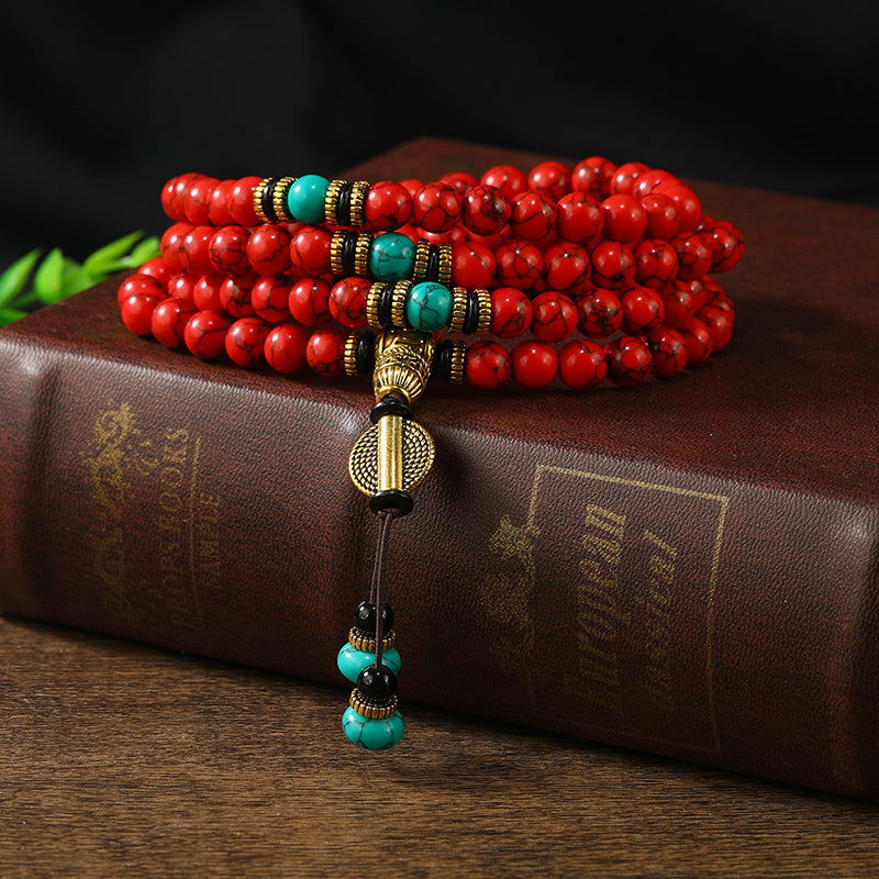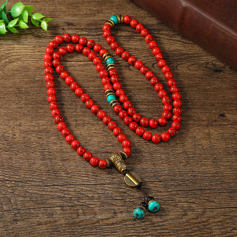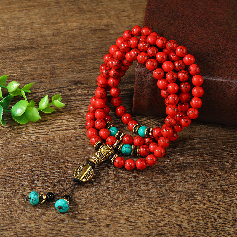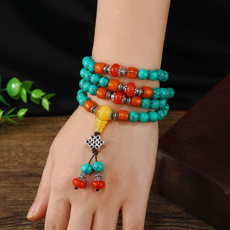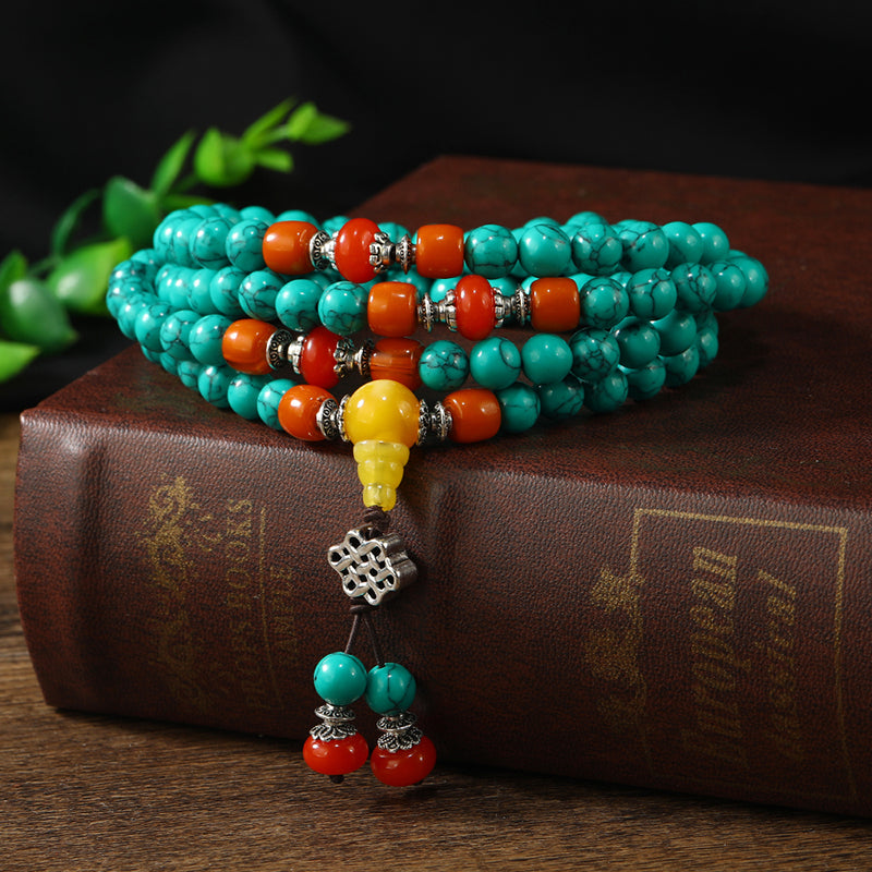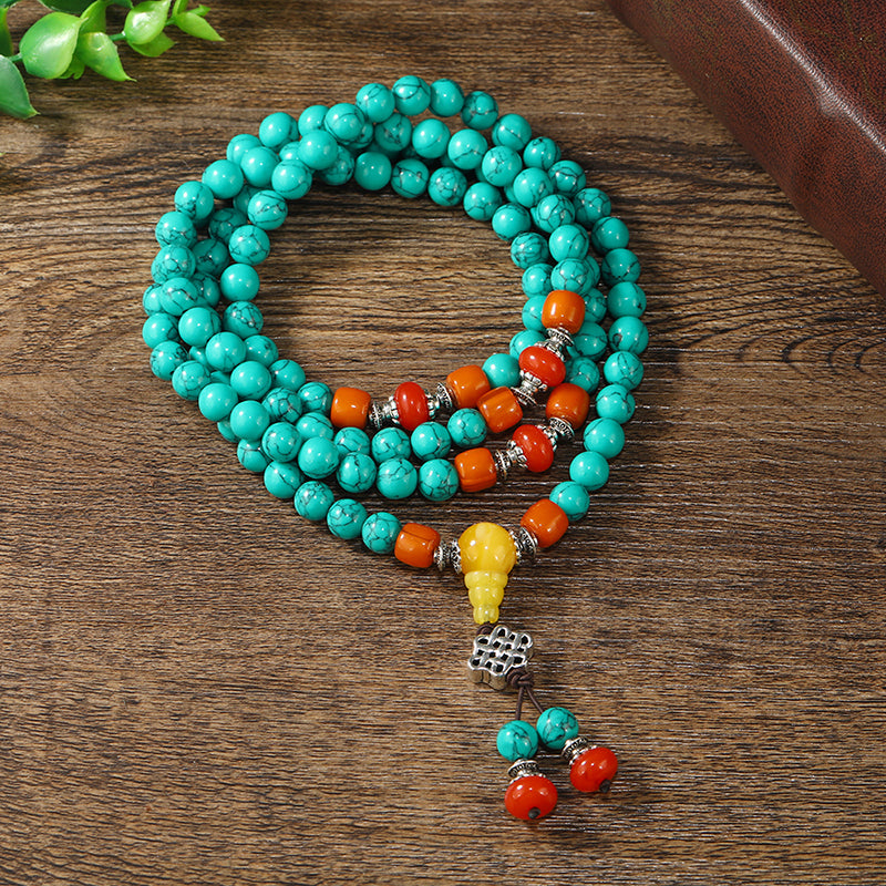 Buddhabelief Tibetan Turquoise and Carnelian Rosary | Handcrafted 108-Bead Rosary