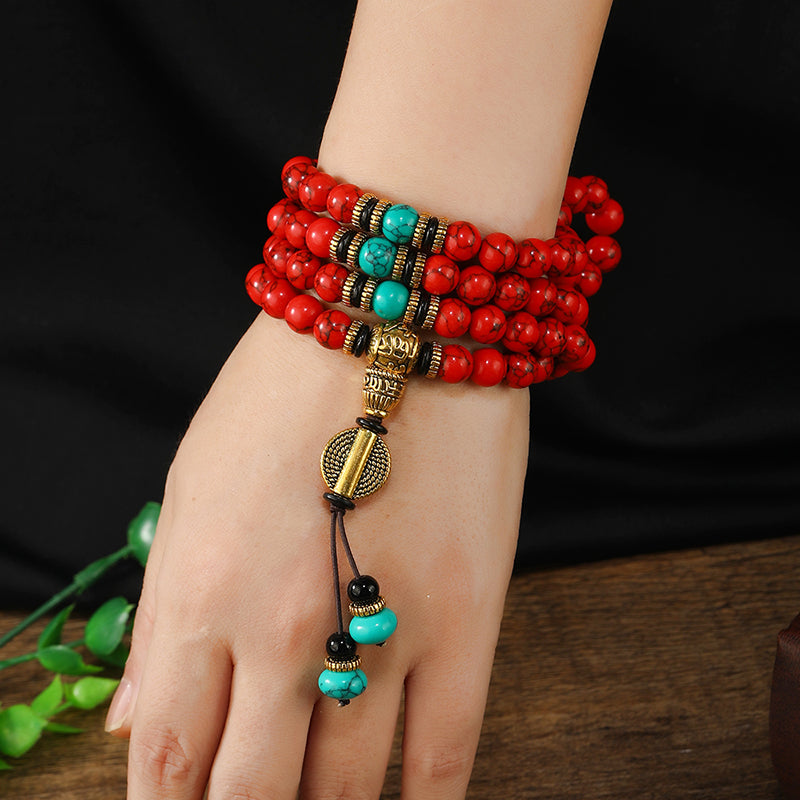 - Decorative Accents: Intricate metal charms (like the Endless Knot or engraved pendants) symbolize eternal wisdom and divine protection in Tibetan Buddhism.